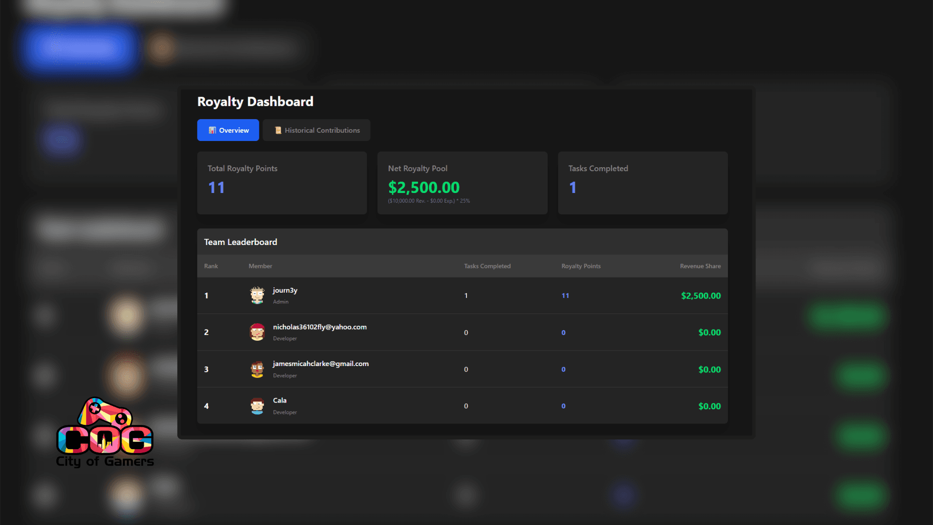 Our custom contribution tracking model measures time, complexity, and impact to calculate fair revenue splits. When your project makes money, everyone gets their cut based on what they actually did - no politics, no "trust me bro" promises, no spreadsheets that nobody believes.